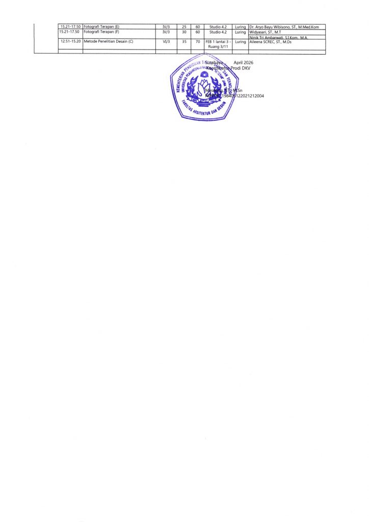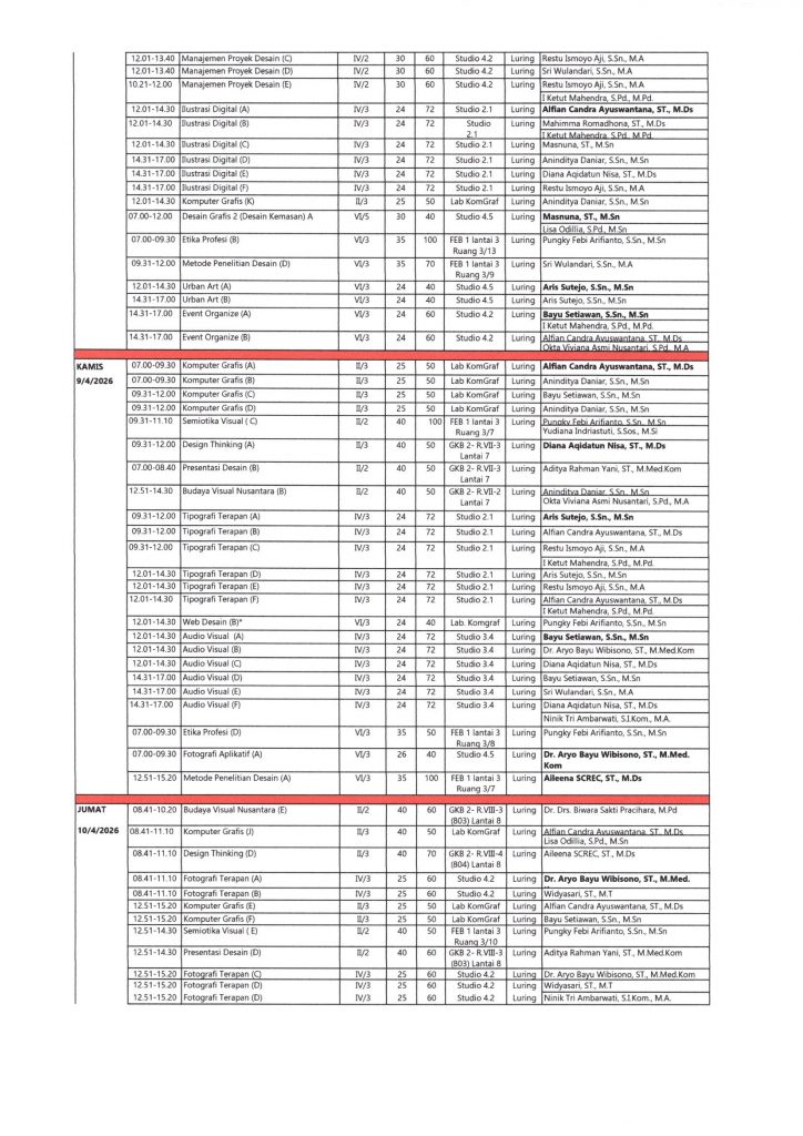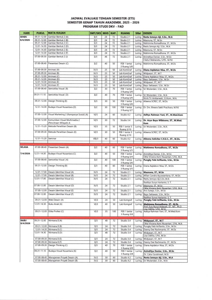 JADWAL ETS SEMESTER GENAP TA. 2025 – 2026 PRODI DKV – FAD